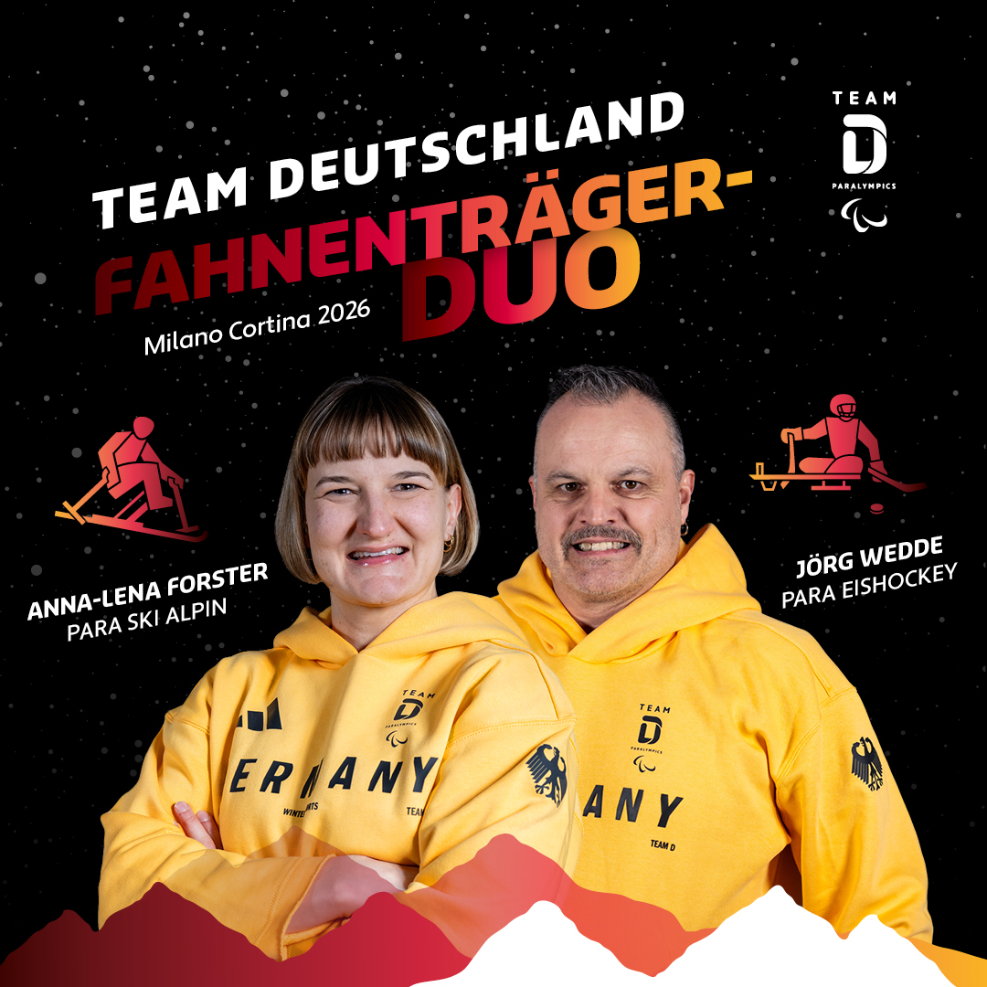 Monoskifahrerin Anna-Lena Forster und Para Eishockey-Ikone sind die Fahnenträger des Team Deutschland Paralympics bei den Winterspielen in Mailand und Cortina 2026. Während Forster bereits zum zweiten Mal die ehrenvolle Aufgabe zuteil wird, darf Wedde beim Comeback nach 20 Jahren die deutsche Fahne schwenken. Das verkündete der Deutsche Behindertensportverband (DBS) bei der Auftakt-Pressekonferenz im Deutschen Haus in Cortina.