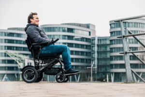 Durch seine sportliche und moderne Optik ist der ergoflix® carbon besonders für Design-Liebhaber reizvoll. Der faltbare Elektrorollstuhl kommt in einem stylischen Schwarz mit weißen Stilelementen daher. Der Rahmen aus einem Carbon-Aluminium-Verbund lässt den Rollstuhl zum wahren Hingucker werden.