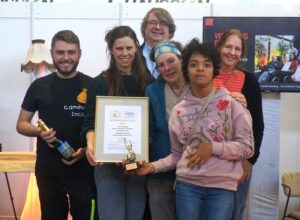 Zwischen Wohnwägen, Reisegewinnspielen und Campingausstattung fand auf der CMT-Urlaubsmesse in Stuttgart kürzlich eine ganz besondere Veranstaltung statt—und die SRH Stephen-Hawking-Schülerin Marlene war mittendrin. Denn die „Aktive Behinderte Stuttgart – das Zentrum selbstbestimmt Leben e.V.“ (ABS ZsL) zeichnete mit dem „Goldenen Rollstuhl“ herausragende Angebote im barrierefreien Tourismus aus. Geehrt wurde dieses Jahr in der Kategorie „Reiseveranstalter“ auch der Camino Incluso, ein barrierearmer Komfortwanderweg im Naturpark Neckartal-Odenwald, an dessen Entstehung die Schülerinnen und Schüler und Lehrkräfte der SRH Stephen-Hawking-Schule (SHS) federführend waren. Gemeinsam mit ihren Lehrerinnen und Lehrer und dem ehemaligen SHS Schüler Fabian reiste Marlene nach Stuttgart, um voller Stolz die Auszeichnung im Namen der SHS entgegenzunehmen.